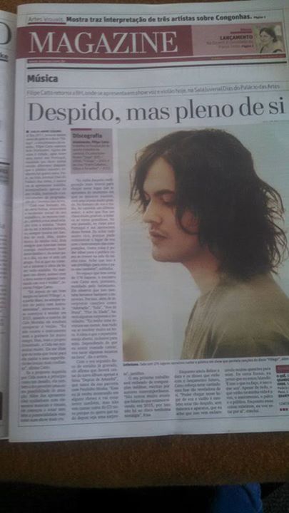 Em uma linda entrevista com Filipe Catto, o jornalista Carlos Siquara focaliza o cantor/compositor em uma matéria de duas páginas no caderno cultural do jornal mineiro “O Tempo” em sua edição desta segunda feira, 27/07/15. Hoje Filipe faz seu primeiro show solo em Belo Horizonte, encerrando o I Festival das Artes, que acontece no Palácio das Artes, Complexo Cultural mais conhecido da cidade.