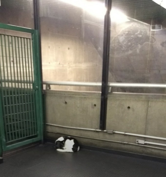 Em 2017, eu trabalhava em um curso de Inglês e voltava pra casa bem tarde, perto das 23h e usava o metrô. Comecei a observar que todas as noites tinha um cachorro prêto e branco dormindo, tranquilo em um cantinho da estação, logo depois do guichê de compra e venda dos tickets (foto acima).