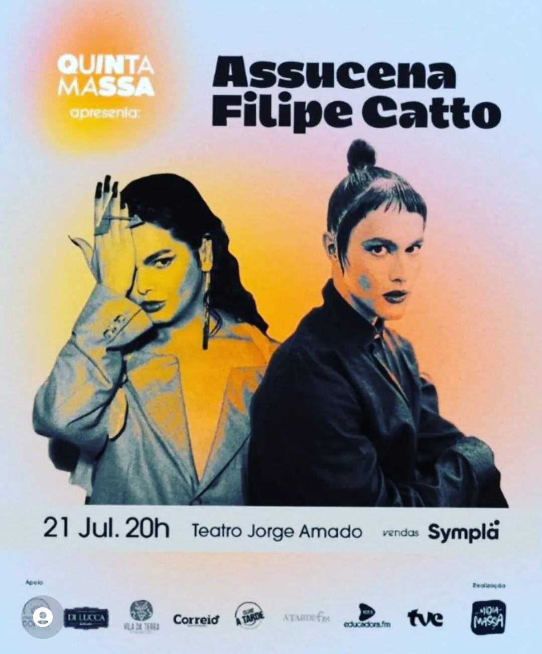 Filipe Catto & Assucena na Bahia: 21/7 – Salvador, 22/7 – Feira de Santana e 23/7 – Vitória da Conquista