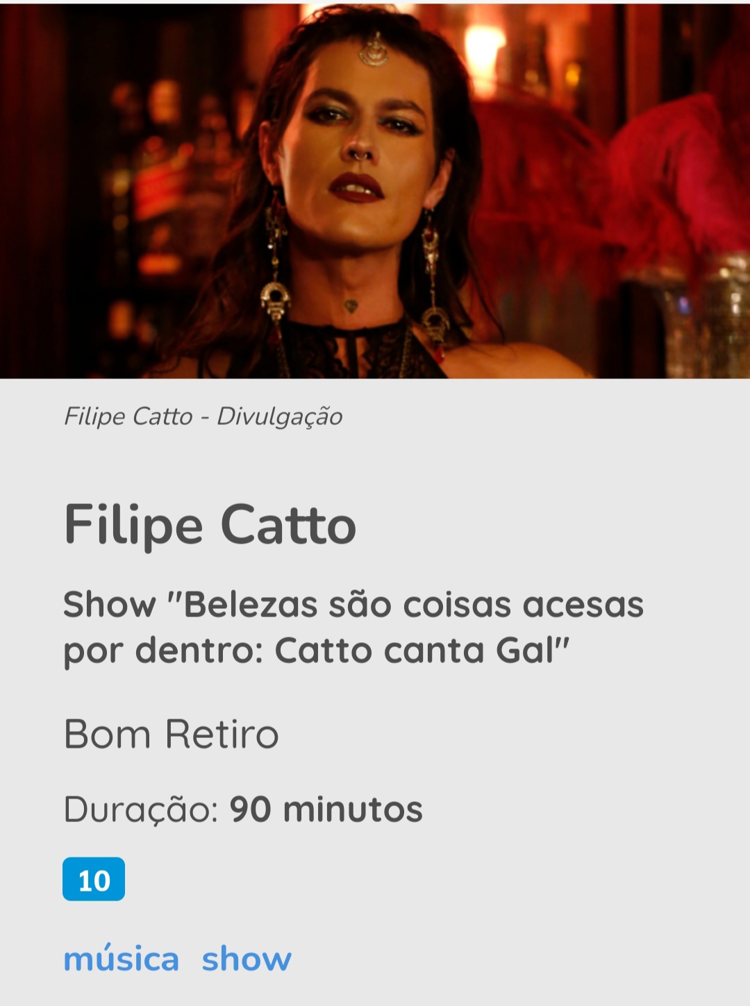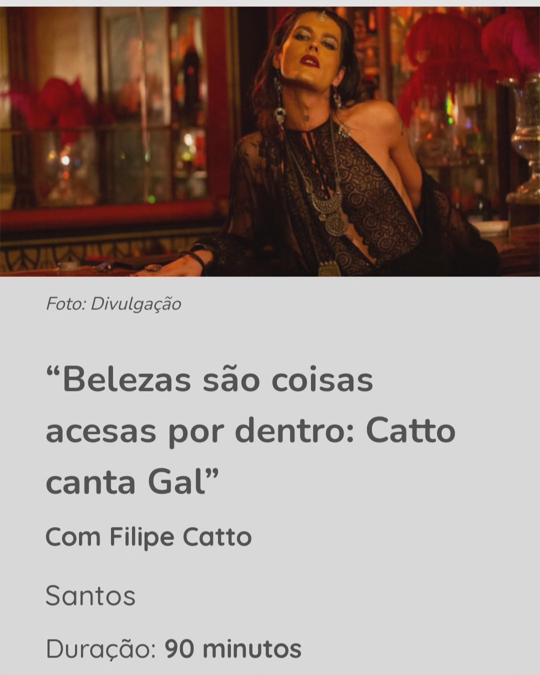 O quê: “Trajeto Lumen ao Vivo” com Filipe Catto.