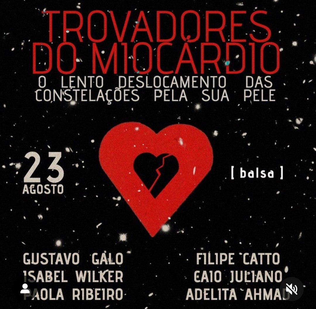 On line – Site do Itaú CulturalDia 20/1/22 em POA e dia 21/1/22 em Santa Maria, RSAgulha- Porto Alegre18/1/22 na @radio_armazemDia 15/1 – Sesc Piracicaba – SP
