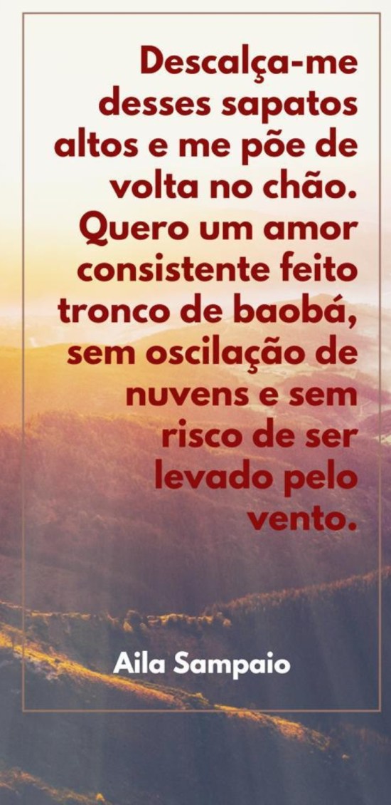 Livra-me, Senhor, dessas horas de saudade dessas exasperadas horas que desafiam os ponteiros e se eternizam como se fossem anos. Tira-me essa sofreguidão do olhar que se demora na lembrança do que devo esquecer e não permita que minhas inseguranças me impeçam de tentar o que posso conseguir. Que o desengano não tome conta nunca […]